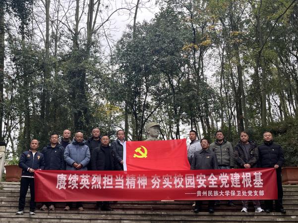 2025年12月3日,保卫处党支部组织全体党员,赴花溪公园戴安澜将军墓开展“赓续英烈担当精神夯实校园安全党建根基”主题党建活动,旨在通过红色教育强化党员责任担当,推动校园安全与党建工作深度融合。